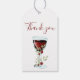 Rosa de Vinho Vermelho Russo Aquarela Obrigado Etiquetas De Presente. O design tem vinho tinto de cor aquosa, rosas e galhos de azeitona.