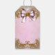 Etiquetas de presente cor-de-rosa e dourada com arco rosa bonito e dourado num lindo fundo brilhante, cor-de-rosa e dourado. Você pode personalizar essas lindas etiquetas de presentes cor-de-rosa e douradas para seu evento simplesmente adicionando o texto de sua escolha no estilo de fonte que você prefere. Este é um design impresso sem arcos reais, joias, brilho, etc.