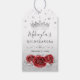 Crie suas próprias etiquetas de lembrancinhas elegantes e personalizadas para uma quinceañera (aniversário de 15 anos / XV), sweet 16 /15, chá de noiva, chá de bebê, casamento de rosas de inverno, ou qualquer celebração de conto de fadas com tema vermelho e prata. Este design encantador com arte original de Raphaela Wilson apresenta uma tiara de princesa com brilho de diamante, rosas em aquarela vermelha profunda e confetes delicados de borboletas prateadas que adicionam brilho e charme a ambos os lados. O fundo apresenta rosas em aquarela prateada clara, criando um visual sonhador e romântico. Personalize o texto com seu nome, iniciais, informações do evento ou uma nota sincera em caligrafia graciosa e tipografia moderna. Seja para dizer “obrigado”, “amor e gratidão” ou uma mensagem personalizada de sua escolha, todas as palavras podem ser editadas para atender ao seu gosto. Ideais para decorar lembrancinhas e presentes legais, essas etiquetas DIY adicionam um toque mágico e personalizado à sua celebração. Categoria: etiquetas de lembrancinhas de casamento de conto de fadas com rosas vermelhas; etiquetas de presente únicas para quinceanera / papelaria; e etiquetas de presente de aquarela floral botânica com borboletas /