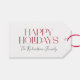 Adicione o toque final perfeito aos seus presentes de Natal com esta etiqueta elegante "Feliz Natal". A frente apresenta uma saudação clássica de Feliz Natal com o nome da sua família em uma mistura graciosa de tipografia festiva vermelha e verde-musgo, criando um visual atemporal e personalizado.