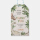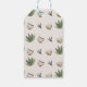 Rustic Brown Green Boys Dinossaur Birthday Gift Tags Meninos lindos dinossauros ganharam o prêmio de aniversário com três dinossauros e verde. A parte de trás da etiqueta apresenta um ovo de dinossauro e um padrão verde.