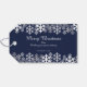 Etiqueta de Natal azul com um padrão de flocos de neve e Cartões de natal.