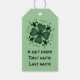 Um belo shamrock com espirais e símbolos Fleur de lis em etiquetas de presentes para personalizar.