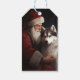 Etiqueta Para Presente Siberian Husky com Papai Noel Natal Festivo
