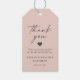 Um Simples Casamento Cor-De-Rosa Esbranquiçado, Obrigado Por Tags De Presente. Este casamento moderno ou qualquer evento Obrigado A design de Etiqueta é simples e mínima com um Plano de Fundo Simples de Cor Sólida e fontes de script de caligrafia de assinatura de tendências. Adicione sua fotografia de casal personalizada ao lado de trás para uma aparência completamente personalizada! Mostrada na nova Paleta de Cores de Casamento. A coleção de Casamento Mínimo Chic é certamente para tornar seu casamento memorável e bonito! Para ver mais, procure as coleções de casamento de 2022 da Chic Paperie para ver todas as tendências de designs e cores de casamento para este ano.
