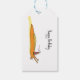 Uma etiqueta de presente com uma ilustração de uma lesma indo para uma festa.