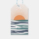 Abstrato ilustração do nascer do sol com o sol laranja e decoração de ondas marítimas azuis, brancas e turquesas
