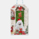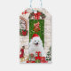 O Natal do Cachorro Spitz sentando do lado de fora da casa decorada com coroa de Natal, a árvore de Natal é uma ideia perfeita de presente de Natal para amantes de cães.