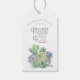 Fontes únicas, suculentos coloridos de aquarelas e fundos brilhantes em um verde macio de primavera são os destaques desses produtos de casamento mix-match.Esta bela etiqueta de presente tem texto opcional de 'Obrigado' junto com um modelo para editar os nomes da noiva e do noivo e a data do casamento. Um padrão brilhante e texturizado, em tons claros e escuros de verde primavera, adiciona um fundo contrastante no reverso. Procure ID515 para ver todos os produtos correspondentes neste conjunto.