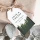 Coloque estas etiquetas de chic rústicas nos seus favores de casamento para dizer obrigado aos hóspedes no estilo de floresta. As etiquetas brancas apresentam uma floresta de silhuetas de pinheiros com "amor e obrigados" e seus nomes e data de casamento. Todo texto é editável para a personalização máxima.