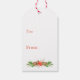 A etiqueta do presente apresenta a coroa de Natal com monograma e personalizada com o nome.