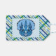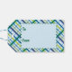 Esta etiqueta de presente apresenta um gráfico divertido e azul triceratops dinossauro e coordena o padrão de xadrez perfeito para as crianças, especialmente para um garotinho.