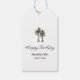 Tropical 30th birthday gift tags, with a palm trees illustration and elegant script design. With customizable lettering, you add your own information. A great way to add the beach to that special birthday celebration.