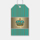 Etiquetas de presente de chá de fraldas azul e príncipe dourado. Você pode adicionar o texto de sua escolha para personalizar essas lindas etiquetas de presentes azul-turquesa e azul-coroa-dourada.