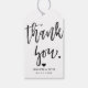 Etiquetas de presente únicas com a letra do seu script dizendo as palavras "obrigado você".