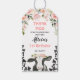 Santa Vaca Floral e Impressão de Vaca Primeiro Aniversário Obrigado O design de Etiquetas de Presente apresenta uma vaca branca e negra fofa, um padrão de impressão de vaca e rosas florais cor-de-rosa. Personalize facilmente o design com seu próprio texto Parte de uma coleção. Itens correspondentes disponíveis.