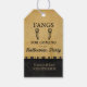 Mande seus convidados para casa com um favor de festa amarrado com esta safra inteligente projetada pelo Halloween que diz "Presas por vir ao nosso Festa de Halloween", seguido de um texto que você pode personalizar com seus próprios nomes. A redação é editável, então essas etiquetas também funcionariam bem como parte de um casamento de Halloween ou de outro evento de 'All Halloween Eve'. O fundo é uma combinação de uma antiga cor amarela-dourada projetada para se parecer com papel vestido no tempo, assim como um fundo preto granulado no fundo. O reverso é um padrão gótico totalmente riscado em preto e amarelo-ouro. Por favor, visite a minha loja para obter mais elementos coordenadores na coleção "Vintage Halloween"!