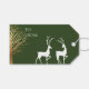 Etiqueta de presente de Natal | Floresta verde de um lado com dois cervos brancos e uma árvore de inverno dourada - Paz na Terra com uma cena de inverno moderna atrás