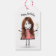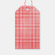 Menina bonitinha com buquê margarida, tênis, vestido de gingham, cabelo e colar de pérolas, em um fundo branco para o aniversário. O lado inverso é um padrão de gingham desbotado vermelho e branco. O texto pode ser alterado.