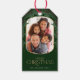 Esta deliciosa etiqueta de presente de Natal mostra uma foto vertical dentro de uma estrutura arredondada moderna, acentuada com uma borda errada. Esta etiqueta verde escura oferece espaço para a sua foto favorita. O texto personalizado, no verso, permite adicionar sua própria mensagem pessoal ou usar a mensagem mostrada.