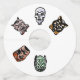 Todos os 5 personagens clássicos de Halloween em uma etiqueta de vidro de papel de festa de Halloween em uma opção escura. Esta etiqueta de vinho de duas faces do Halloween lhe dá mais opções de estilo. Você será a bruxa, o diabo, o pirata, o gato, ou o crânio na sua festa de Halloween?