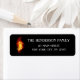 Pena de pavão brilhante feita de fogo e chamas sobre fundo negro.