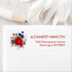 A striking floral arrangement featuring a bold red rose at the center, surrounded by soft white blossoms and deep blue rosebuds. Lush green foliage and textured red accents complete the composition, creating a balanced red, white, and blue palette. This elegant bouquet blends classic botanical beauty with a subtle patriotic theme, perfect for celebrations, holidays, and decorative designs.