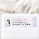 An editable return address label template with retro letters in red and blue and vintage Americana 4th of July art of a patriotic boy holding 4th of July holiday fireworks on a blue and white faux canvas background.