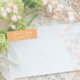 Escolha as etiquetas de endereço de retorno de cor para o seu convite de casamento enviando envelopes com o nome da noiva e noiva do futuro em um script branco e estilizado. Personalize suas etiquetas editando com seus próprios nomes e endereços.