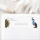 Pavão de aquarela pintado à mão, projetado com uma etiqueta elegante de endereço de retorno