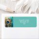 Um belo conteúdo generativo ai design com uma pena de pavão 3D em ouro, verde esmeralda e azul contra um fundo azul teal que editou modelos de texto brancos para sua redação personalizada. Este gráfico elegante e luxuoso é ideal para qualquer casamento, função ou evento "temático do pavão".