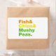 Etiqueta Peixes e Chips e Ervilhas Mushy.