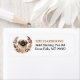 O lado esquerdo destas etiquetas de endereço de retorno apresenta um retrato de um adorável cão Pekingês. A imagem é fechada dentro de uma bonito coroa floral e foliar de outono em tons de marrom, bronzeado e creme. Seu texto personalizado está em preto e marrom-ouro à direita.