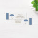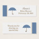 Esta etiqueta favorita do querido apresenta um guarda-chuva azul macio com uma borda azul e mocha. Personalize esta etiqueta com os detalhes do chá de fraldas e um obrigado.