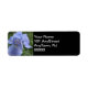 Close-up of pretty periwinkle iris floral and greenery. Name and address details in white. Lovely for wedding or other occasion to place on backside. Original Photography by TamiraZDesigns.
