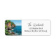 Pretty Door County Bluffs and Lake Michigan illustration on a personalized return address label with pretty tree covered bluffs and blue Lake Michigan water.