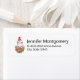 Etiquetas de endereço com um design bonitinho e branco com um pinguim adorável vestindo um chapéu de santa vermelho. Ficando atrás de um buquê de flores com canas doces listradas cor-de-rosa e branca.