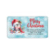 Essas etiquetas de endereço de volta de Natal azul e vermelho na moda apresentam o "Feliz Natal" dizendo em letra vermelha de escrita casual e um pinguim bonito em um chapéu de Papai Noel sentado com um pequeno boneco de neve. O modelo facilita a digitação do seu endereço antes de fazer o pedido.