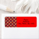 Essas etiquetas de endereço de retorno têm um design de Bauhaus com quatro círculos em azul, amarelo, verde e branco em um campo de vermelho.