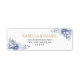 Adicione um toque final refinado aos envelopes do seu casamento com este elegante adesivo de endereço de devolução, apresentando flores em aquarela azul suave empoeirado e delicados acentos em dourado. Perfeito para selar os Save the Dates, convites, cartões de RSVP e notas de agradecimento, este design combina lindamente com a coleção completa Powder Blue & Gold Wedding.