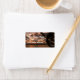 Linda foto do pôr do sol de uma praia exótica de areia branca tropical com palmeira. O texto neste modelo de etiqueta de endereço é totalmente personalizável.