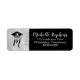 Elegante rótulo de endereço de retorno de graduação com desenho de boina de graduação com inicial e ano em fundo de brilho falso prateado na esquerda e nome e endereço de retorno em cinza prateado claro em fundo preto na direita. Perfeito para seus envios comemorativos. Design por Holiday Hearts Designs (direitos reservados).