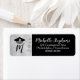 Design de etiqueta de devolução de formando elegante com um boné de formatura com início e ano em tom prateado impresso faux glitter fundo visual no nome da cinza prateada esquerda e leve e endereço de retorno em um fundo preto à direita. Perfeito para as suas mensagens celebratórias. Design por Holiday Hearts Design (direitos reservados).