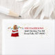 Estas etiquetas de endereço de devolução de Natal têm uma imagem de um adorável cão Cavalier King Charles Spaniel em um saco de presente de Natal. Atrás do cão há uma sequência de luzes coloridas de Natal. Seu texto personalizado está em vermelho e preto à direita. Uma sobreposição sutil de confete dourado dá interesse ao fundo.