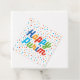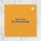 Etiqueta de presentes para o Feriado de Purim com uma saudação personalizada no verso. Formato quadrado.