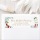 Design de feriado festivo e rústico com texto dourado rodeado por uma borda floral vermelha, verde e dourada.