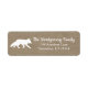 Etiquetas de endereço em russo e chic com uma silhueta de raposa branca cercando a letra monográfica de sua família em branco. O fundo é um impressão falso burlap. Excelente para chás de fraldas de animais da floresta!