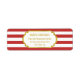 Etiquetas de endereço de volta de Natal com padrão de listras brancas e vermelhas e detalhes dourados.