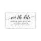 Etiqueta de endereço de retorno de na moda com as palavras "Salvar a Data" em um script cursivo de relaxamento preto perfeito para quando você envia os convites Salvar a Data/Casamento. Personalize-o substituindo o texto do marcador de posição. Para obter mais opções, como alterar a fonte, o tamanho do texto ou o espaçamento entre letras, clique no botão "Personalizar". *Observe que a Marca d'água Zazzle que aparece na visualização de zoom NÃO aparecerá no produto impresso final © Rosewood e Citrus