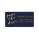 NewParkLane - Etiquetas de endereço de retorno elegante, com a citação 'Salvar a data' na tipografia elegante de script de folha de ouro falso, contra um fundo azul marinho. Fácil de personalizar no Zazzle com seu próprio texto para um design personalizado. Todo estilo de texto, cores, tamanhos podem ser modificados para ajustado das suas necessidades. Verifique as Coleções de Script de Pincel Douradas para itens correspondentes ou outras aspas. Você tem desejos pessoais específicos de design? Sinta-se livre para me contactar.